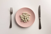 Zdjęcie "Kapsułki medyczne na talerzu. Płaski lay." może być wykorzystywane do celów osobistych i komercyjnych zgodnie z warunkami zakupionej licencji Royalty-free. Obraz jest dostępny do pobrania w jakości wysokiej rozdzielczości do 5760x3840.