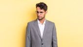Zdjęcie "młody handdosme człowiek uczucie smutku i jęczeć z nieszczęśliwym spojrzeniem, płacze z negatywnym i sfrustrowanym nastawieniem do płaskiej ściany kolor" może być wykorzystywane do celów osobistych i komercyjnych zgodnie z warunkami zakupionej licencji Royalty-free. Obraz jest dostępny do pobrania w jakości wysokiej rozdzielczości do 5760x3840.