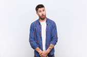 Zdjęcie "młody człowiek handdosme patrząc zmieszany i zdezorientowany, zastanawiając się lub próbuje rozwiązać problem lub myślenia o płaskiej ścianie kolor" może być wykorzystywane do celów osobistych i komercyjnych zgodnie z warunkami zakupionej licencji Royalty-free. Obraz jest dostępny do pobrania w jakości wysokiej rozdzielczości do 5760x3840.