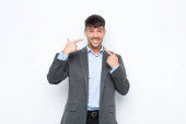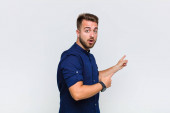 młody handdosme człowiek wskazując na siebie z mylić i quizzical wygląd, zszokowany i zaskoczony być wybrany przeciwko płaskiej ścianie kolor