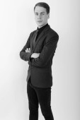 Studio zdjęcie młodego przystojnego biznesmena na białym tle w czerni i bieli
