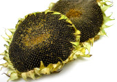 jesień słoneczniki z dojrzałych nasion na białym tle