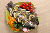 owoce morza z łososia z cytryny pomidorów i sałatką
