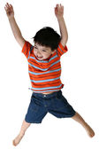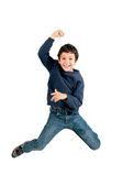 mały chłopiec skacze na na białym tle