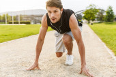 Zdjęcie "Zdjęcie atrakcyjnego mężczyzny ćwiczącego ze słuchawkami i biegającego rano po zielonym parku" może być wykorzystywane do celów osobistych i komercyjnych zgodnie z warunkami zakupionej licencji Royalty-free. Obraz jest dostępny do pobrania w jakości wysokiej rozdzielczości do 5760x3840.