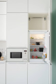 Zdjęcie "Otwórz dużą lodówkę z produktami we wnętrzu kuchni" może być wykorzystywane do celów osobistych i komercyjnych zgodnie z warunkami zakupionej licencji Royalty-free. Obraz jest dostępny do pobrania w jakości wysokiej rozdzielczości do 5760x3840.