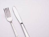 komplet czystych błyszczących widelca i noża
