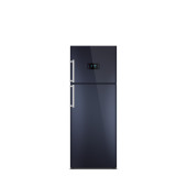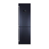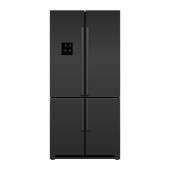 dwie szklane drzwi błyszczący czarny lodówka na białym tle
