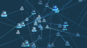 sieć społecznościowa online, tło 3d ilustracja renderowanie, maszyna głębokie uczenie się, przechowywania danych w chmurze cyfrowej, futurystyczne połączenie, system technologii, ludzie łączą