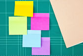 Kolorowe karteczki, które znajdują się na okładce notebooka.