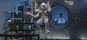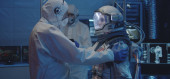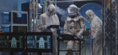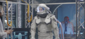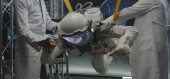 Astronauta i naukowcy testujący skafander kosmiczny