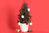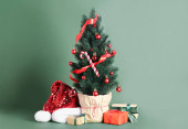 Zdjęcie "Ozdobiona choinka i prezenty w pobliżu ściany światła" może być wykorzystywane do celów osobistych i komercyjnych zgodnie z warunkami zakupionej licencji Royalty-free. Obraz jest dostępny do pobrania w jakości wysokiej rozdzielczości do 5760x3840.