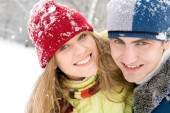szczęśliwa para rodzina w zimie