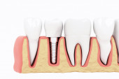 Zamknij Element implantów stomatologicznych. Niebieski kolor przezroczysty. Ilustracje 3d