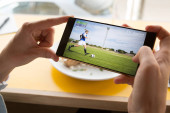 Zdjęcie "Kobieta gra za pomocą smartfona przy stole ze smacznymi skrzydłami Bbq w kawiarni" może być wykorzystywane do celów osobistych i komercyjnych zgodnie z warunkami zakupionej licencji Royalty-free. Obraz jest dostępny do pobrania w jakości wysokiej rozdzielczości do 5760x3840.