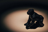 Selektywne skupienie goryla z kolorowymi zwierzętami zabawkowymi na żółtym tle, wymieranie koncepcji zwierząt