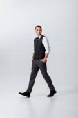 Zdjęcie "przystojny mężczyzna śpiew podczas dotykając mikrofon odizolowany na szary " może być wykorzystywane do celów osobistych i komercyjnych zgodnie z warunkami zakupionej licencji Royalty-free. Obraz jest dostępny do pobrania w jakości wysokiej rozdzielczości do 5760x3840.