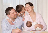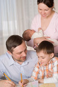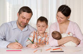 Rodzina siedzi przy stole