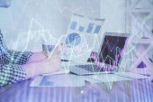 Zdjęcie "Multi ekspozycji wykresu z człowiekiem wpisując na komputerze w biurze na tle. Koncepcja ciężkiej pracy." może być wykorzystywane do celów osobistych i komercyjnych zgodnie z warunkami zakupionej licencji Royalty-free. Obraz jest dostępny do pobrania w jakości wysokiej rozdzielczości do 5760x3840.