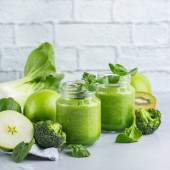 Zielone Smoothie z warzywami dla zdrowej, surowej, wegańskiej diety