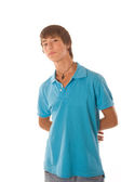 śliczna nastolatka w czerwoną koszulę