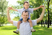 Zdjęcie "Ojciec z synem w parku" może być wykorzystywane do celów osobistych i komercyjnych zgodnie z warunkami zakupionej licencji Royalty-free. Obraz jest dostępny do pobrania w jakości wysokiej rozdzielczości do 5760x3840.