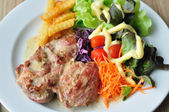 Japoński żywności, kostki kurczaka zapiekane z jajkiem i warzyw.