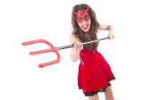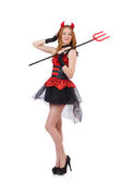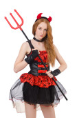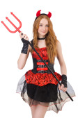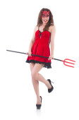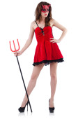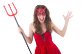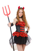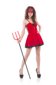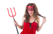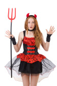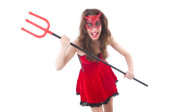 Kobieta jako czerwony diabeł w koncepcji halloween