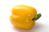 Żółta papryka na białym tle, słodka papryka stosowana do gotowania i do jedzenia świeżego, słodka papryka to papryka, która nie jest pikantna