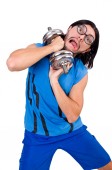 zabawny facet z nunchucks