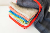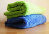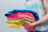 osoba ręka gospodarstwa ręcznik kolor przed kąpielą