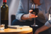Widok człowieka trzymającego kieliszek do wina przy stole, panoramiczne ujęcie