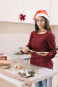 Dziewczyna czyta książkę kucharską na ladzie z jajkami i miską