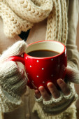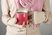 kobiece ręce z gorących napojów, szczelnie-do góry