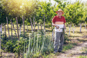 Zdjęcie "Starszy pan w sadzie jabłkowym." może być wykorzystywane do celów osobistych i komercyjnych zgodnie z warunkami zakupionej licencji Royalty-free. Obraz jest dostępny do pobrania w jakości wysokiej rozdzielczości do 5760x3840.