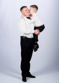 Zdjęcie "Mały chłopiec z tatą dżentelmenem. Dzień rodzinny. szczęśliwe dziecko z ojcem. spotkanie biznesowe. męska moda. rodzicielstwo. Dzień ojców. ojciec i syn w formalnym garniturze. Styl smokingu. Przyjęcie weselne. szczęśliwy dzień rodzinny" może być wykorzystywane do celów osobistych i komercyjnych zgodnie z warunkami zakupionej licencji Royalty-free. Obraz jest dostępny do pobrania w jakości wysokiej rozdzielczości do 5760x3840.