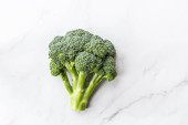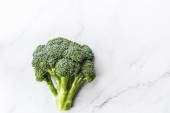Świeże zielone brokuły w misce na lekkim stole, widok z góry