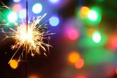 Noworoczna impreza płonąca ogniem w niebieskim tle. Chri.