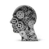 widok z góry wyciąć białą głowę człowieka z narzędzi izolowanych na szarości