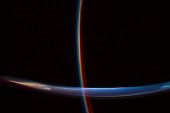 czarne tło z krzywą niebiesko-białe linie świetlne po lewej stronie