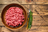 Zdjęcie "Tekstura mielonej wołowiny na patelni. Organiczne mięso. Czarne tło. Widok góry. Miejsce na tekst" może być wykorzystywane do celów osobistych i komercyjnych zgodnie z warunkami zakupionej licencji Royalty-free. Obraz jest dostępny do pobrania w jakości wysokiej rozdzielczości do 5760x3840.