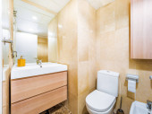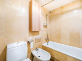 Zdjęcie "Czyste jasne wnętrze łazienki z lustrem, wanną, białym zlewem i marmurową płytką. Oryginalna przestrzeń hotelowa z nowoczesnymi elementami" może być wykorzystywane do celów osobistych i komercyjnych zgodnie z warunkami zakupionej licencji Royalty-free. Obraz jest dostępny do pobrania w jakości wysokiej rozdzielczości do 5760x3840.