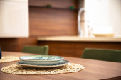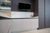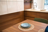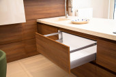 Wnętrze nowoczesnych szafek kuchennych i orzechowych