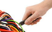 kilka różnych kolorowych przewodów opanował w pięść