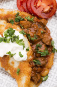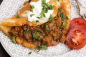 Naleśniki ziemniaczane z mięsem, warzywami, pomidorami i pietruszką