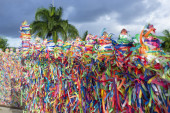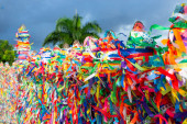 Wspaniałe kolorowe tło słynnych wstążek Senhor do Bonfin, Salvador Brazylia.