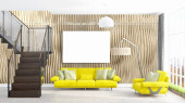 Nowoczesny design wnętrza pokoju dziennego z pięknym widokiem. 3d renderowanie