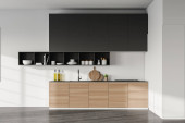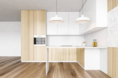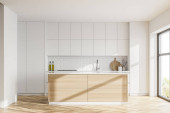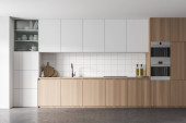 Zdjęcie "Biała i drewniana kuchnia z blatami" może być wykorzystywane do celów osobistych i komercyjnych zgodnie z warunkami zakupionej licencji Royalty-free. Obraz jest dostępny do pobrania w jakości wysokiej rozdzielczości do 5760x3840.