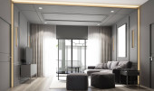 Zdjęcie "Nowoczesny design wnętrza pokoju dziennego z pięknym widokiem. 3d renderowanie" może być wykorzystywane do celów osobistych i komercyjnych zgodnie z warunkami zakupionej licencji Royalty-free. Obraz jest dostępny do pobrania w jakości wysokiej rozdzielczości do 5760x3840.