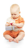 szczęśliwe dziecko w różowy kurtkę i czarne spodnie rysuje biały na białym tle na